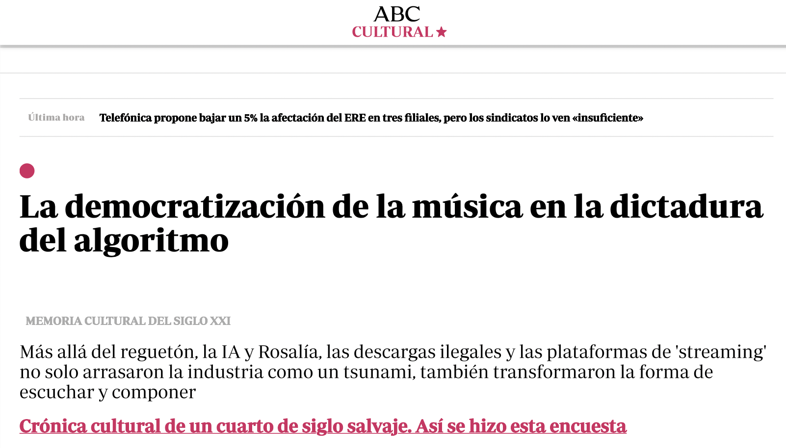 Entrevista en El Confidencial sobre el impacto de la IA generativa en música